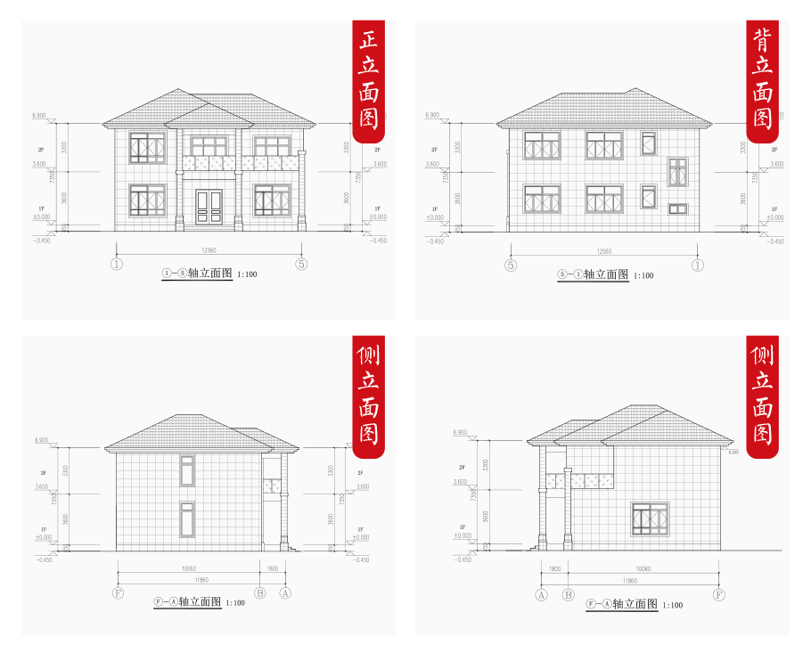 | 建筑圖: | 建筑平面圖:一層平面圖,二層平面圖; 建筑立面圖:東立面圖,西立面圖,南立面圖,北立面圖,剖面圖; 大樣圖:樓梯詳圖,細(xì)部大樣,門窗大樣 |