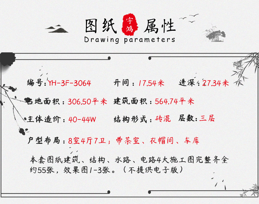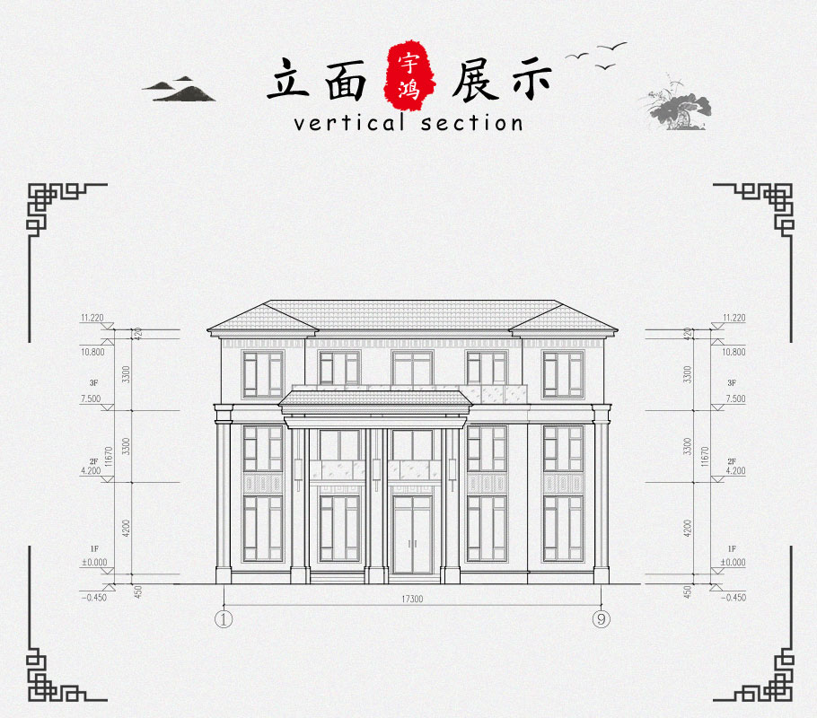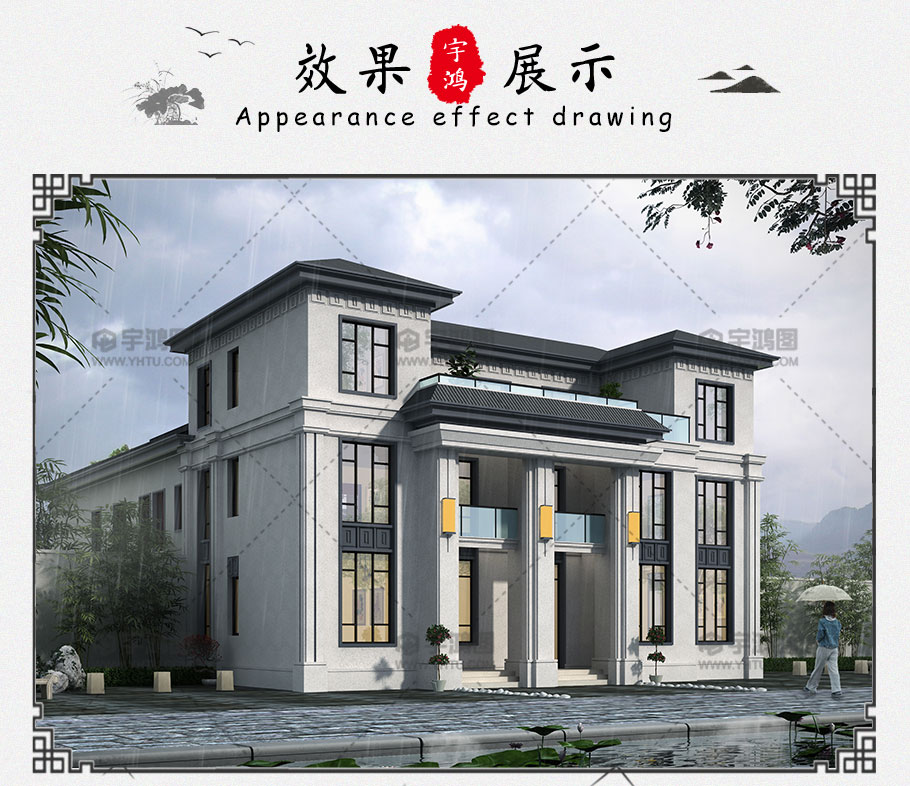新款大氣中式農村三層別墅設計圖紙及效果圖